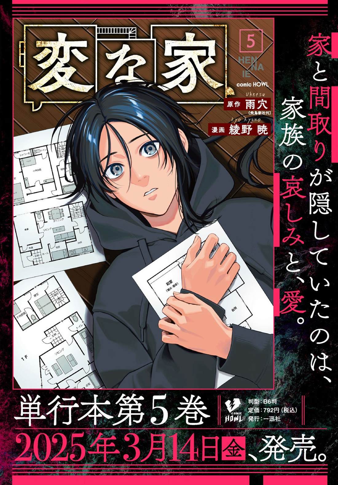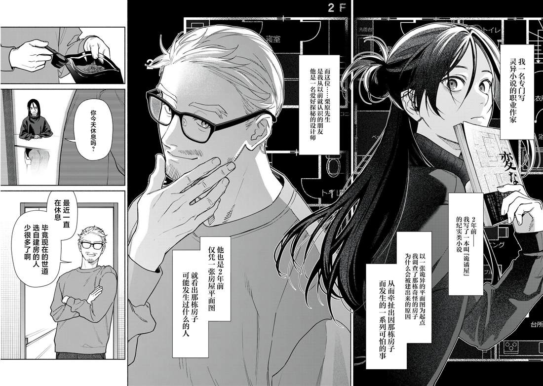 超自然领域作家的“我”收到了某间房子的平面图,乍一看就是个普通的独栋住宅,在征求熟人设计师栗原的意见后,他说起了“这间房子有很奇怪的地方”......。这张平面图里究竟隐藏了什么...。充满话题的房产推理,期待的漫画化!!