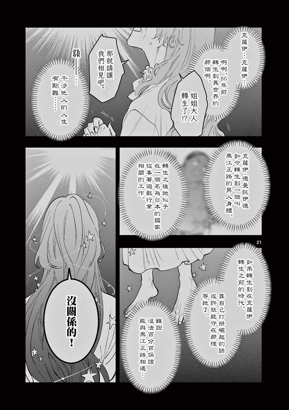 恶名昭彰的克萝伊·德曼托伊德在刑场上魂归西天。临死之际,她发誓若能转生,便要洁身自好、光明磊落。克萝伊转生到了现代日本,以中年男性黑江正路之姿现世……!