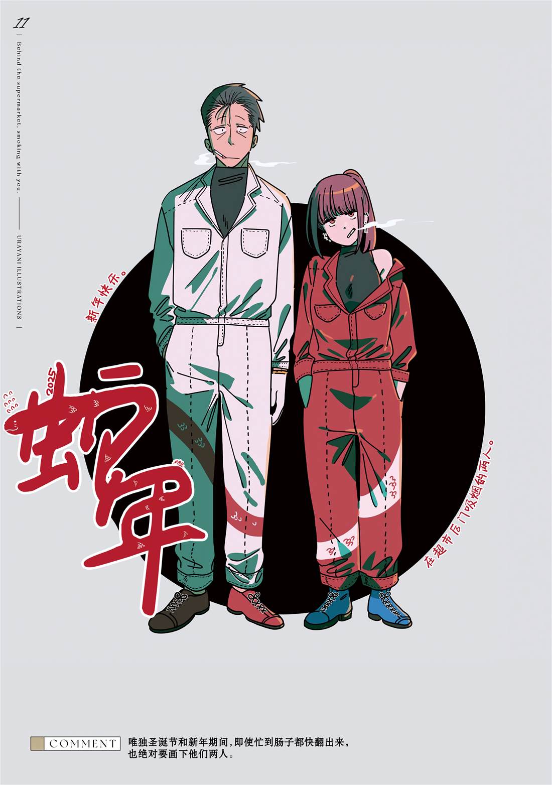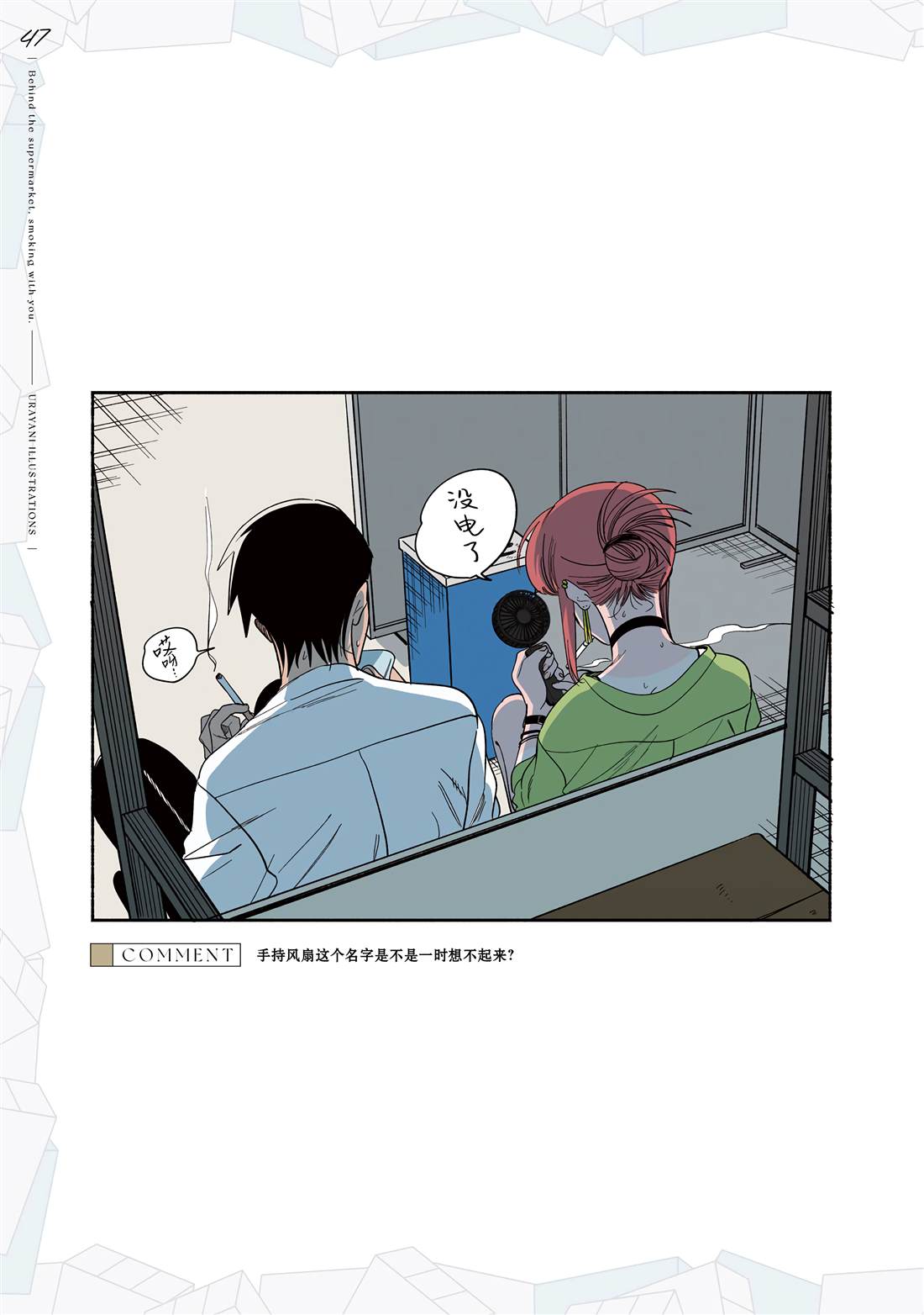 在超市后门吸烟的二人