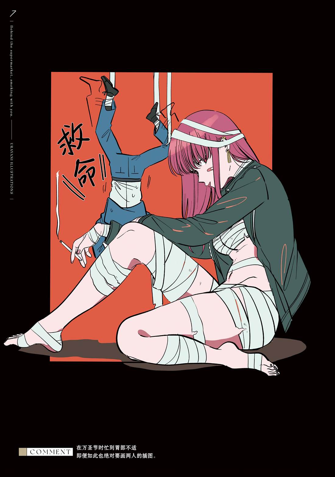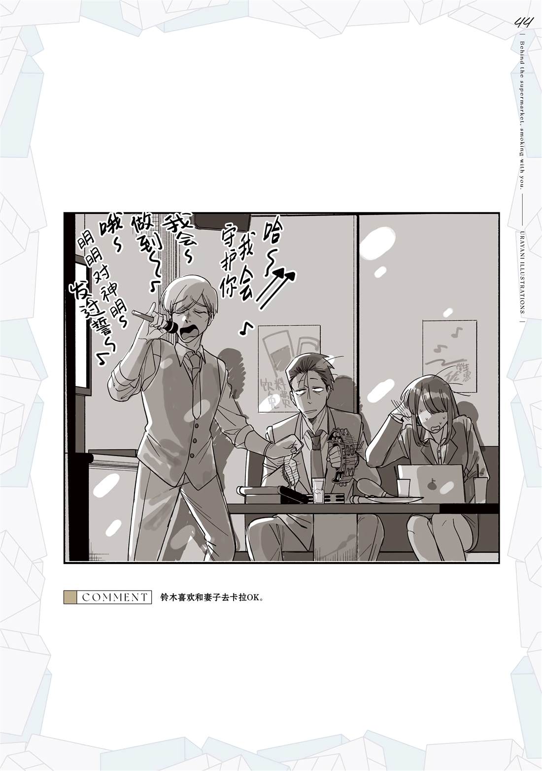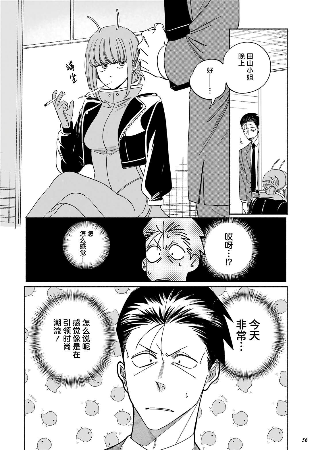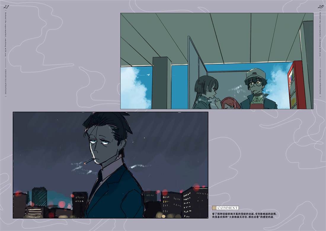 佐佐木是一名奔波于社畜街道,满身疲累的中年男性,每天能够治愈他的只有香烟和他常去的超市的女性店员——山田小姐的灿烂笑容。在某个忙碌一天疲惫不堪的夜晚,前来寻求治愈的佐佐木不仅没有看到山田小姐,连吸烟的地方也都找不到了…。消沉的佐佐木突然听到有人对他说「吸烟来这边」,循声望去,映入眼帘的是一名奇妆异服[]服、自称田山的女孩——[-折叠]