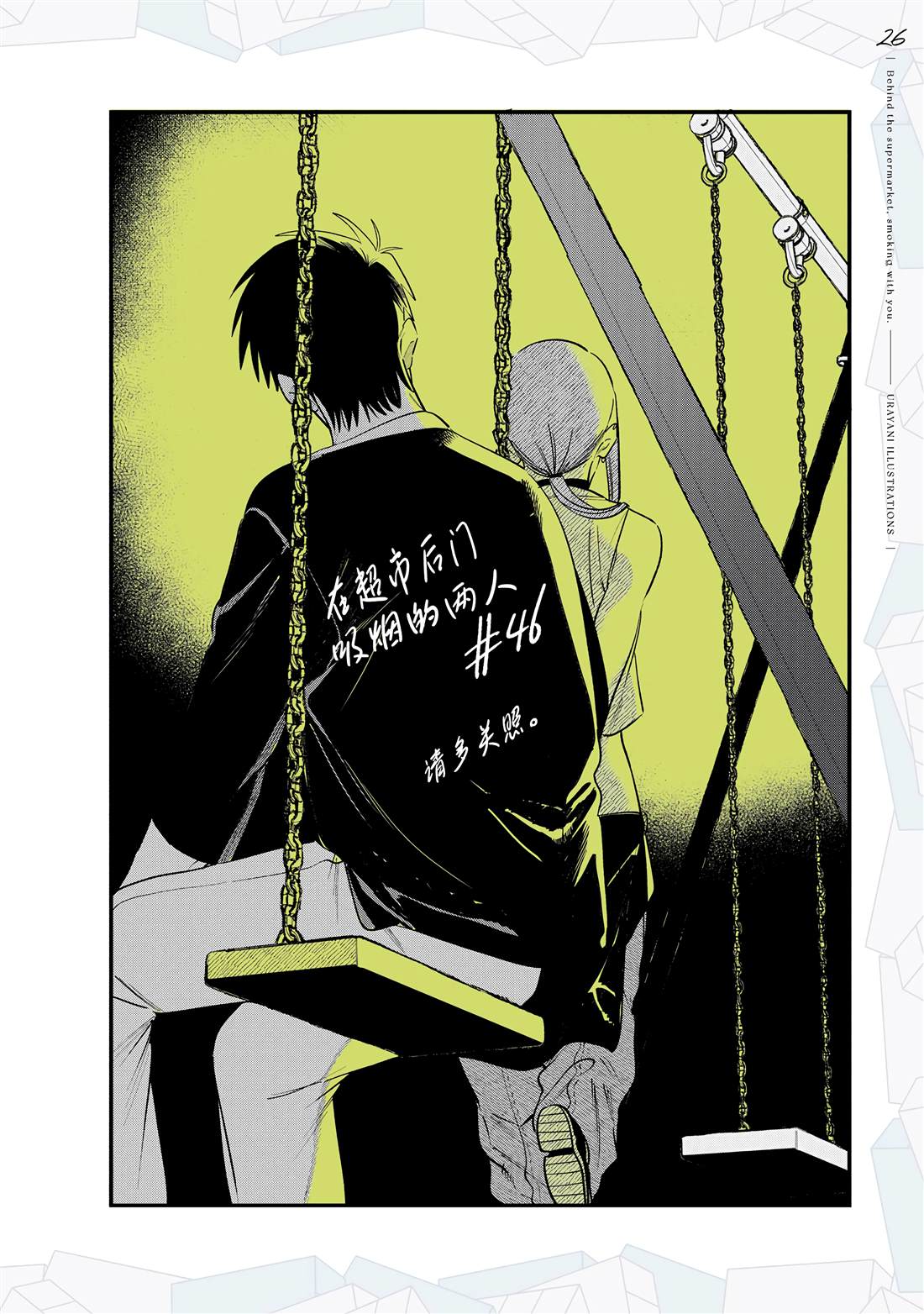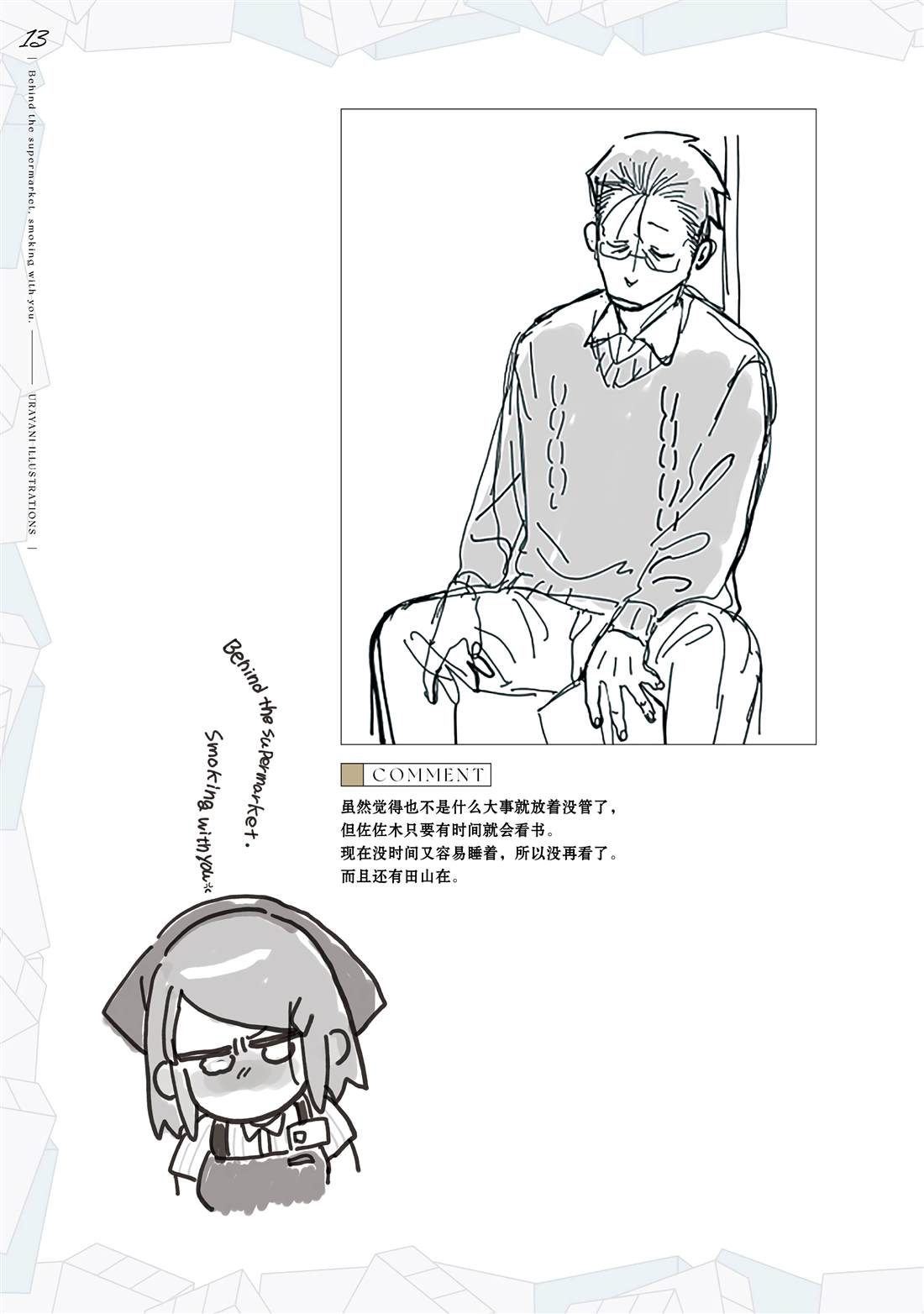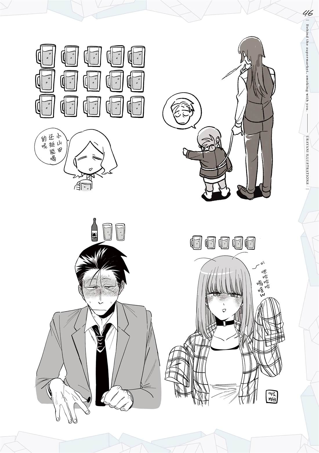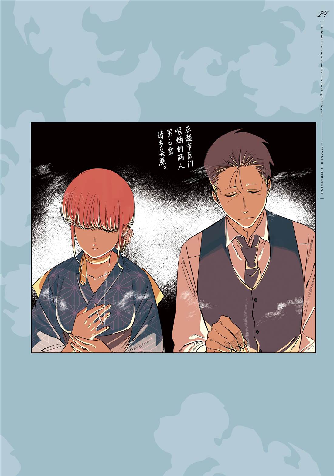 佐佐木是一名奔波于社畜街道,满身疲累的中年男性,每天能够治愈他的只有香烟和他常去的超市的女性店员——山田小姐的灿烂笑容。在某个忙碌一天疲惫不堪的夜晚,前来寻求治愈的佐佐木不仅没有看到山田小姐,连吸烟的地方也都找不到了…。消沉的佐佐木突然听到有人对他说「吸烟来这边」,循声望去,映入眼帘的是一名奇妆异服[]服、自称田山的女孩——[-折叠]