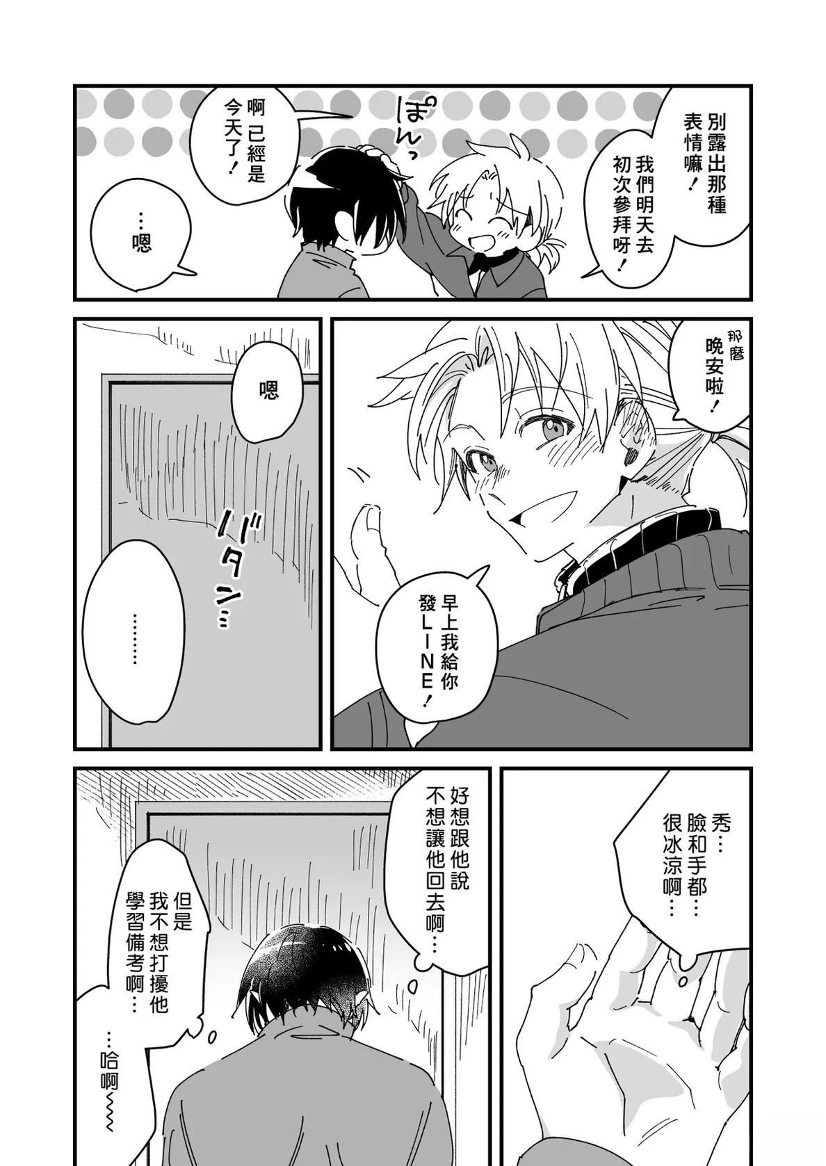“你究竟有多喜欢我啊!” 明明是带著调侃的语气说的…!? 喜欢足球的高三学生·秀斗和比自己小2岁的青梅竹马·真央。 虽然真央话不多,但被认为是冷酷的王子,在女生中很受欢迎,但他却对秀斗非常亲近。 有一次真央像往常一样去秀斗家过夜,却因为错过了电影的情节, 而步步紧逼地强行重现…!? 对事情充满兴趣![]!想要与青梅竹马一起尝试...☆ 沉默冷峻的年下王子×滑稽年上的青梅竹马,充满克制的BL故事[-折叠]